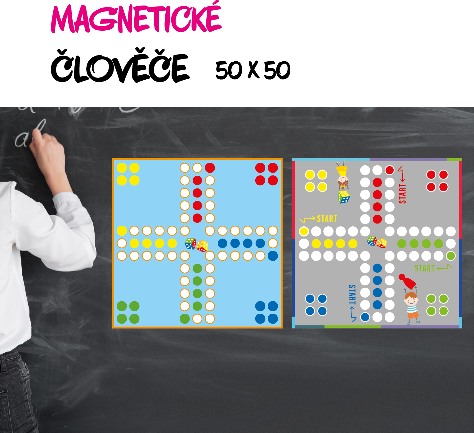 4 magnetické figurky od každé barvy + herní kostka